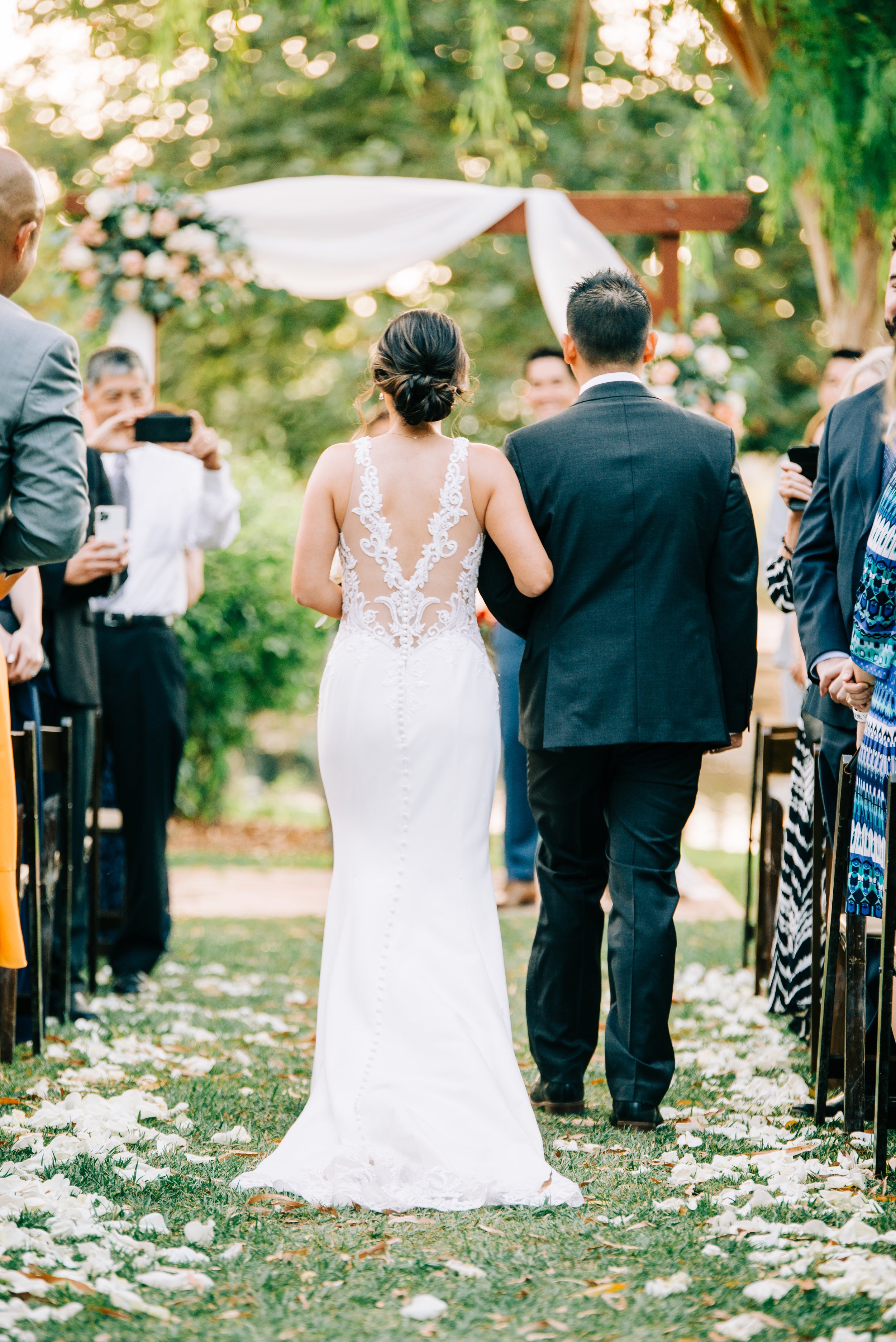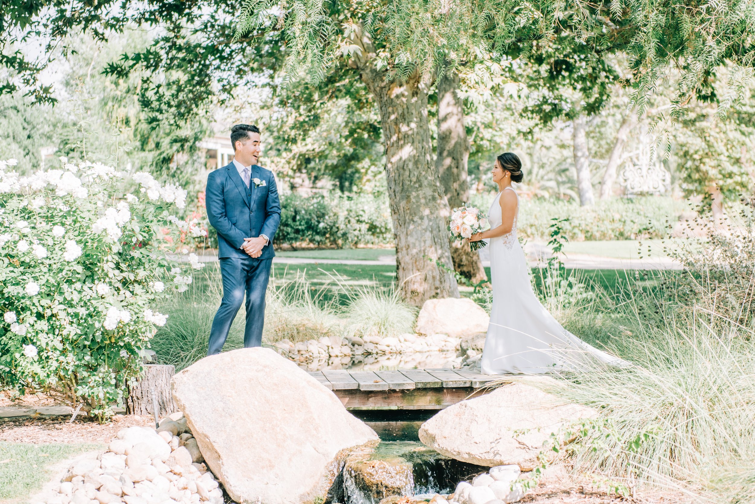 After Jack and Erika finished the preparations and final details the morning of their wedding, they chose to do a first look. We had Jack cross one of the many wooden bridges and he was able to see his bride in a romantic, intimate setting with just the two of them before the ceremony. This allowed extra time during the wedding day to do the majority of the photos before the ceremony which meant extra party time for the couple after the ceremony!